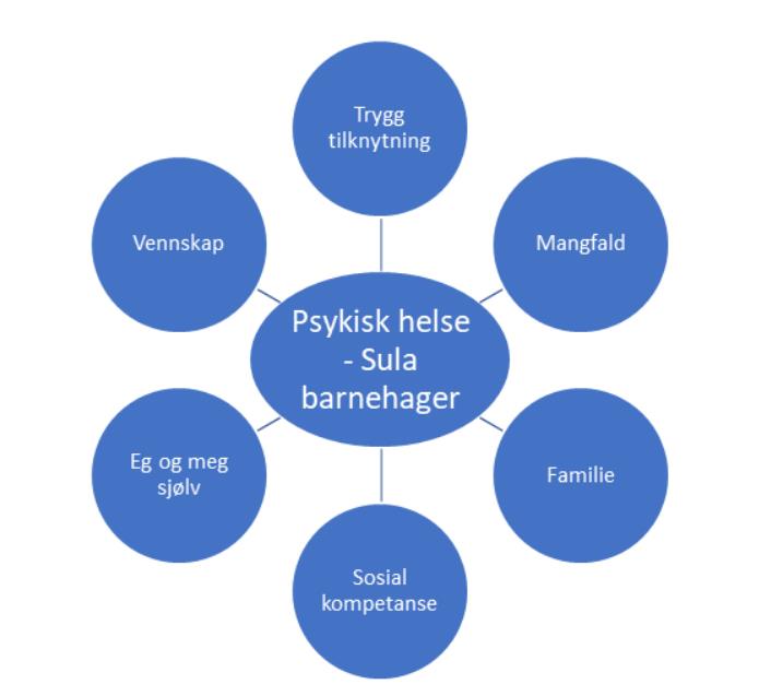 I Sunde barnehage skal vi fremme både fysisk og psykisk helse. Dei pedagogiske hjelpemidla Livet og sånn og Grønne tanker, glade barn er til god hjelp i arbeidet med å fremme god psykisk helse. I barnehagealder handler det mykje om å bli kjent med følelsane sine, og å få hjelp til å handtere dei på ein god måte. Det handler om venskap, gode relasjonar og trygg tilknytning. Les meir om våre tankar om dette i vår pedagogiske plattform.
